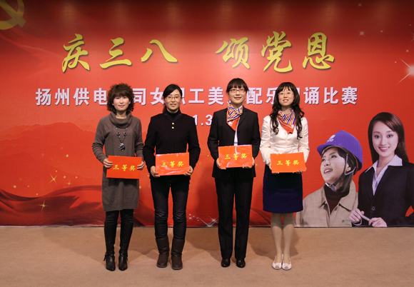 揚(yáng)州供電公司女職工委員會(huì)3月4日下午舉辦“慶三八、頌黨恩——揚(yáng)州供電公司女職工美文配樂朗誦比賽”活動(dòng)。公司女職工選手以美文配樂朗誦的形式,向偉大的中國(guó)共產(chǎn)黨表達(dá)了由衷的熱愛。揚(yáng)州供電公司黨委書記馬愛杰、工會(huì)主席吳鴻出席活動(dòng),揚(yáng)州各縣公司工會(huì)主席、各基層分工會(huì)主席、女工委員、女職工代表90多人參加了這次活動(dòng)。