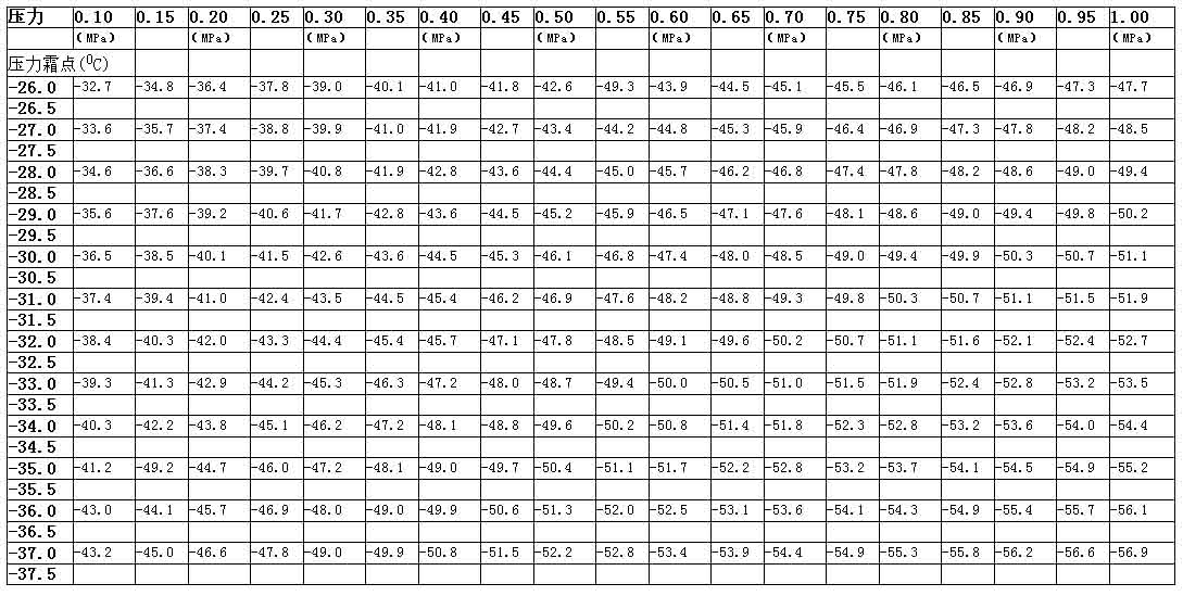壓力霜點(diǎn)(露點(diǎn))——壓力——常壓霜點(diǎn)(露點(diǎn))對應(yīng)的關(guān)系表