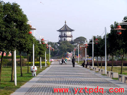 廣場設(shè)計(jì)遵循“以人為本、以水為源、以綠為美”的原則,注重高郵水鄉(xiāng)的地域特色。在整體布局上采用“一軸二面三點(diǎn)”,即以“景觀主軸線,蝶池小面、蝶園主廣場,入口商業(yè)休閑廣場、親水廣場、宋城墻魁星閣古跡”為主體,水上平臺和引橋流水融為一體,使人感受到水鄉(xiāng)特有的水性的滋潤。廣場綠化設(shè)計(jì)充分體現(xiàn)“花香蝶自來”的意境,種植花草樹木近40個(gè)品種,其中有櫸樹、香樟、桂花、梅花、天堂草等,錯(cuò)落有致。駐足看,廣場綠草如茵,彩蝶飛舞,彩色噴泉千姿百態(tài);徐行聽,流水淙淙,舞曲翩翩,綠樹叢中鳥啼鶯囀,讓人心曠神怡。
