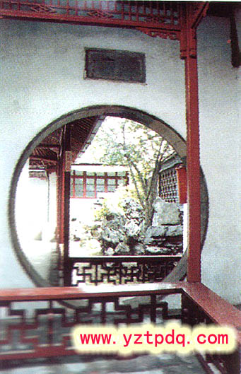 東院以回廊通連,南向植細(xì)桿梧桐,瘦長如修竹,饒有清妍之姿。經(jīng)回廊達(dá)半亭,亭欄臨水,池水由此北折,水池盡頭,有軒三間,池邊花壇上置數(shù)點(diǎn)峰石,小徑用鵝卵石砌鋪。游人至此,雖則地已窮盡,但隨路一轉(zhuǎn),或東登半亭,或緣池西去,達(dá)于園之西部。