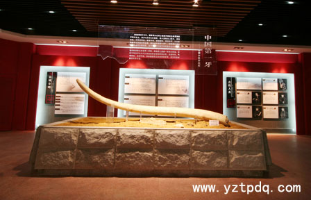 走進(jìn)寶應(yīng)博物館,一進(jìn)一樓大廳,就能看見(jiàn)一根象牙,長(zhǎng)420厘米,最大直徑22.2厘米,淺白色,月牙狀彎曲,表面平滑,為國(guó)內(nèi)出土同類(lèi)化石之最,堪稱(chēng)“中華第一牙”。這根象牙是2003年9月在寶應(yīng)夏集鎮(zhèn)境內(nèi)出土的,是一個(gè)古菱齒象牙化石,古菱齒象比猛犸象要大20萬(wàn)歲,體型比猛犸象還要大,是當(dāng)時(shí)地球上顯赫一時(shí)的“大象家族”。