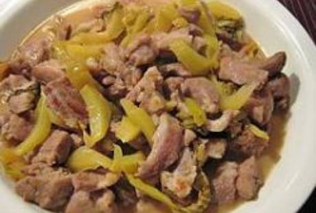 記得小時(shí)候,咸菜是家里招待客人的一道主菜。有客自遠(yuǎn)方來(lái),母親從壇子里抓出一小碗咸菜,用清水一洗,將五花肉切成很小的肉片。添柴燒旺火,把肉片入鍋爆炒,很快香氣撲鼻。再將咸菜倒入翻炒,須臾,放蔥、蒜、辣椒,蓋上鍋蓋,少許時(shí)間揭開(kāi),咸菜炒五花肉,香氣陣陣,看著就眼饞了。難怪家鄉(xiāng)人說(shuō)“咸菜炒五花肉,神仙也來(lái)湊”。咸菜除了炒五花肉,還和很多食物都是絕配。咸菜炒雞蛋、咸菜炒小藕、咸菜燒豆腐、咸菜慈姑湯等等。收了新小麥,磨些面粉,這時(shí)母親就會(huì)抓點(diǎn)咸菜切點(diǎn)蔥花和面做餅。我站在鍋臺(tái)前,口水淌淌的。母親用鍋鏟子從鍋里給我鏟一塊,我手捧咸菜麥面餅,吹掉熱氣,小心翼翼地咬一口,真香啊……
